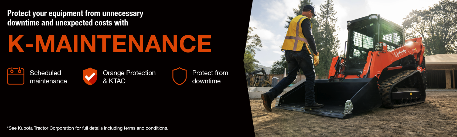 For an even higher level of protection, consider K-Maintenance, which can be bundled with Orange Protection—Kubota’s extended warranty program— and KTAC, Kubota’s insurance offering. While each can be purchased separately, combining them ensures the most comprehensive coverage and seamless integration into your equipment financing with KCC.