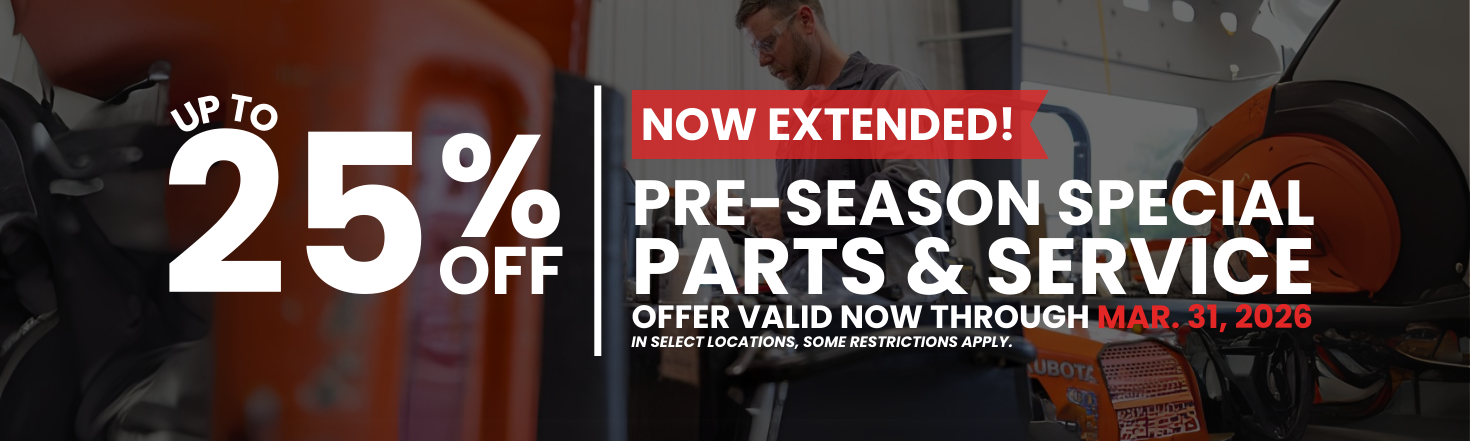 There’s still time to get your equipment ready for the season ahead. Our Pre-Season Service & Parts Specials have been extended! Take advantage of exclusive savings on maintenance, repairs, and essential parts before the busy season hits. Don’t wait until it’s too late—schedule your service and stock up on parts before these deals end on March 31, 2026!