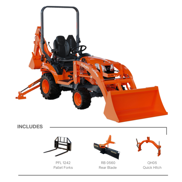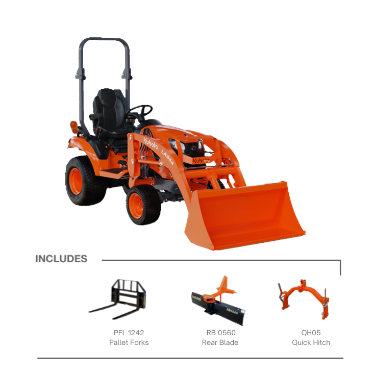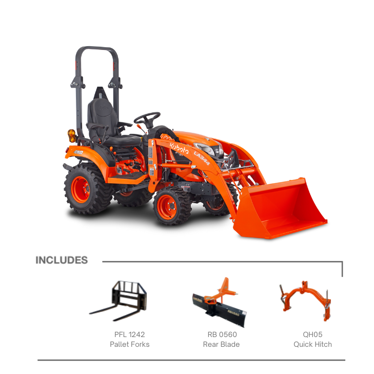 Tractor, Loader, Quick Hitch, Pallet Forks, and Rear Blade Package Package!